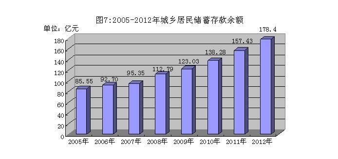 全市金融机构人民币各项存款余额260.74亿元,比年初增长12.9%,其中:城乡居民储蓄存款余额178.40亿元,比年初增长13.3%。金融机构贷款余额157.20亿元,比年初增长10.9%。