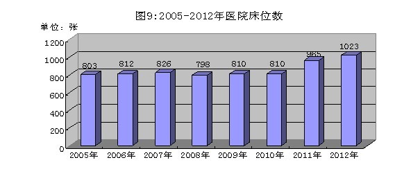 全市有医院、卫生院14间;卫生机构床位1023张,其中等级医院床位908张;卫生机构人员数1618人,卫生技术人员有1403人,其中:执业医师439人,执业助理医师87人,注册护士549人,药剂人员122人,检验人员57人。全市卫生站150个,卫生站总人数196人。新型农村合作医疗稳步发展,覆盖面不断扩大,参加人数28.03万人。