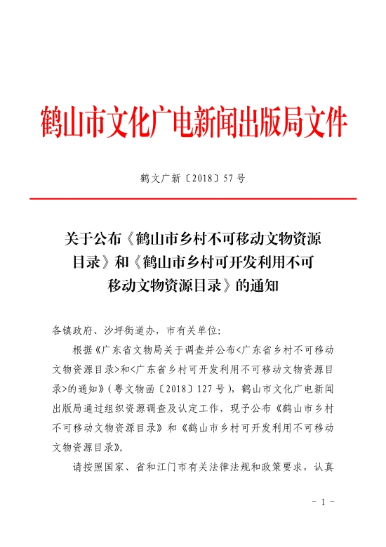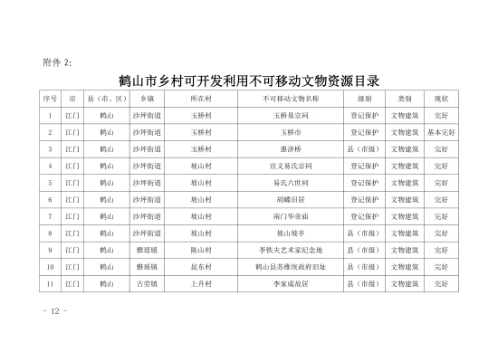 关于公布《西瓜视频 乡村不可移动文物资源目录》和《西瓜视频 乡村可开发利用不可移动文物资源目录》的通知