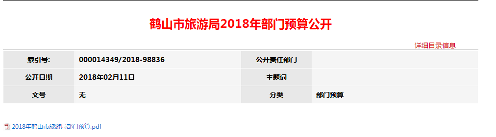 (五)继续推进财政资金信息公开。根据市政府和市财政局的统一规定,我局于2018年2月、10月公开了《西瓜视频 旅游局2018年部门预算公开》和《2017年西瓜视频 旅游局部门决算公开报告》,并接受市民监督。