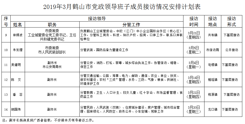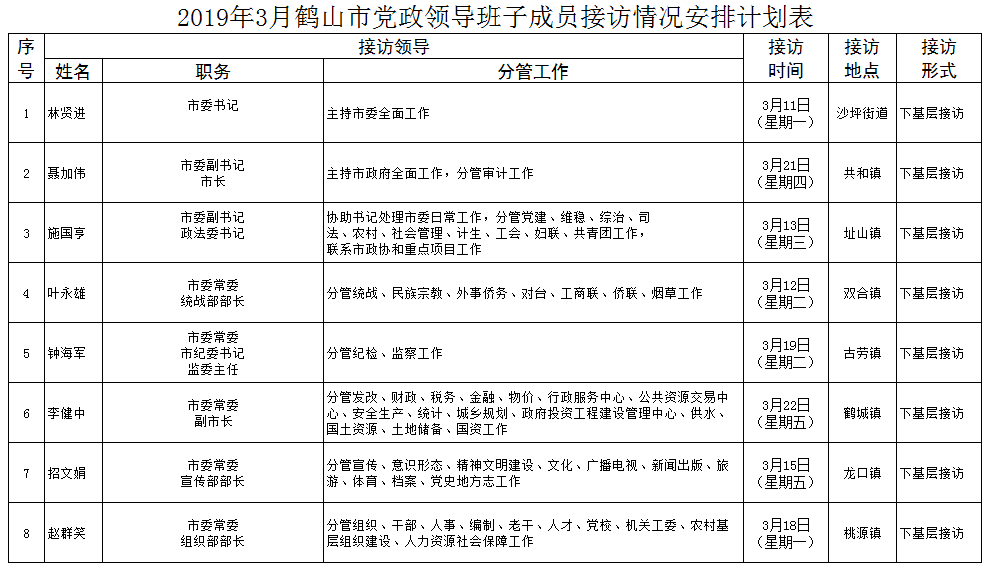 2019年3月西瓜视频 党政领导班子成员接访情况安排计划