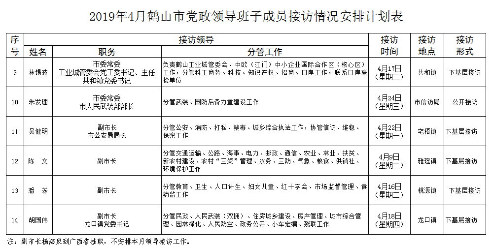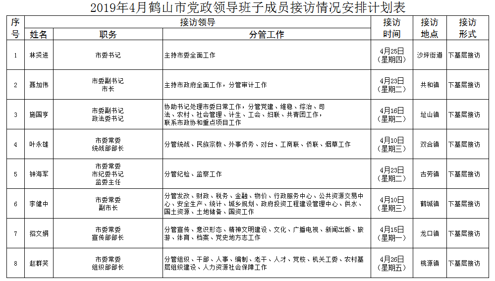 2019年4月西瓜视频 党政领导班子成员接访情况安排计划