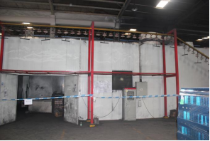 3、塌陷的喷粉房顶和损坏的灯具