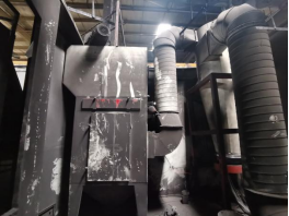 事故发生部位为喷粉房,喷粉房是喷涂车间内新喷涂线的其中一个工艺部位,喷粉房长2.8米,宽2.2米,高2.5米。喷粉房采用的工艺是静电喷涂,其粉尘的二次回收系统包括1台旋风除尘装置和1台滤芯除尘装置,二者串联使用,滤芯除尘装置上方设置有引风电机。(如下图所示)