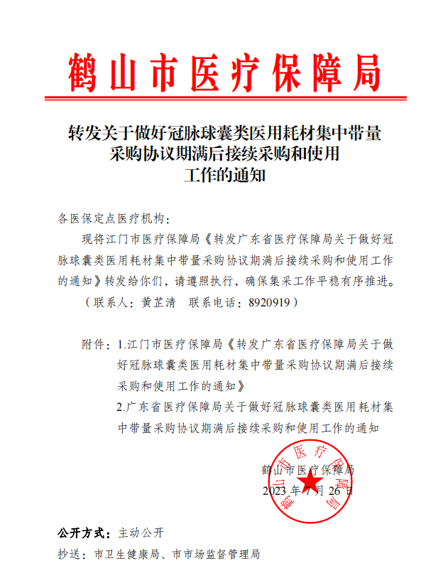 转发关于做好冠脉球囊类医用耗材集中带量采购协议期满后接续采购和使用工作的通知