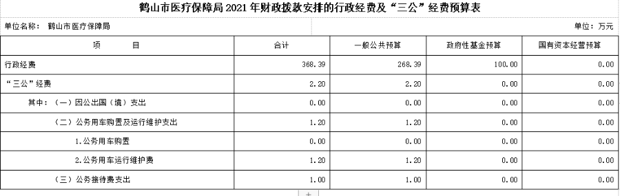西瓜视频 医疗保障局2021年财政拨款安排的行政经费及“三公”经费预算表