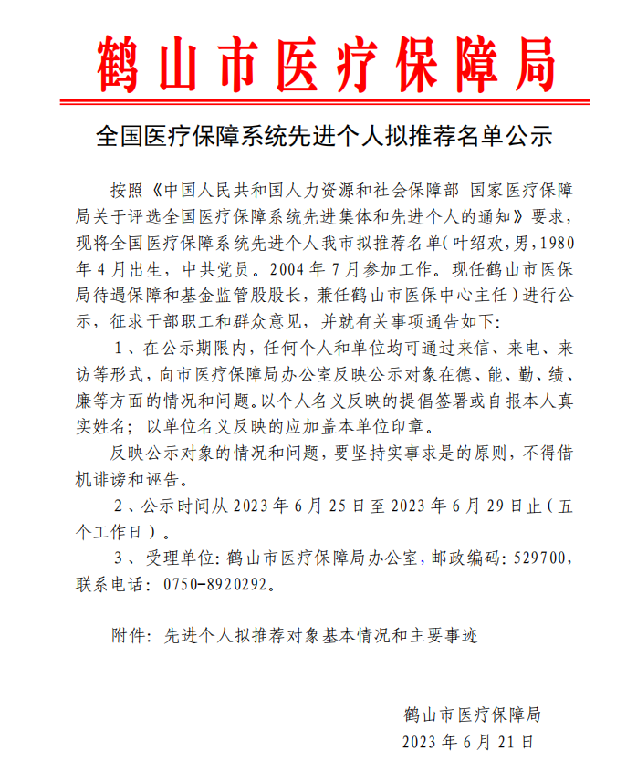 全国医疗保障系统先进个人拟推荐名单公示