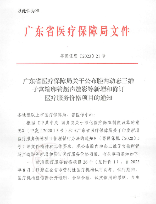 广东省医疗保障局关于公布腔内动态三维子宫输卵管超声造影等新增和修订医疗服务价格项目的通知(以此件为准)