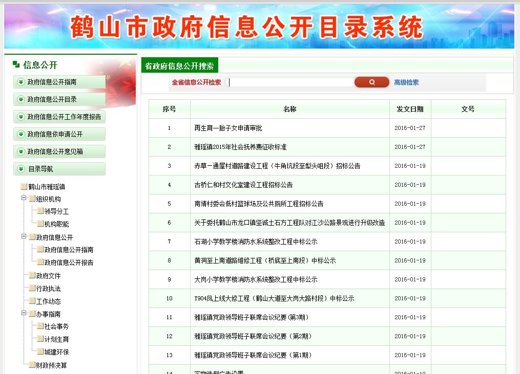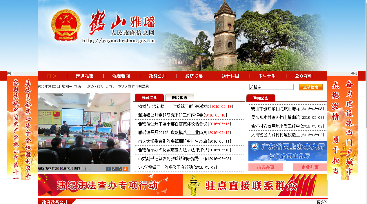 雅瑶信息网是雅瑶镇信息公开的第一平台,通过网站各项栏目,均可以查阅全镇主动公开的政府信息,在线申请政府信息公开。同时,还可以浏览政府公示公告等。在形式上不拘一格,不仅限在政府信息公开栏、文件、工作简报、公告公示、新闻媒体、便民资料上进行公开,还及时主动召开民主议事坐谈会、民主政风行风评议会,并不断加强维护并及时更新公开信息。