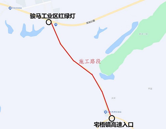 ●封闭路段 省道S273宅梧高速口壳牌加油站至双和公路段