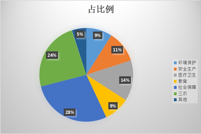 在西瓜视频公开 栏主动公开政府信息中,“三农”和社会保障占的比例较大,分别占了24%和28%,另外环境保护占9%、安全生产11%、教育占9%、医疗卫生占14%,其他占5%。