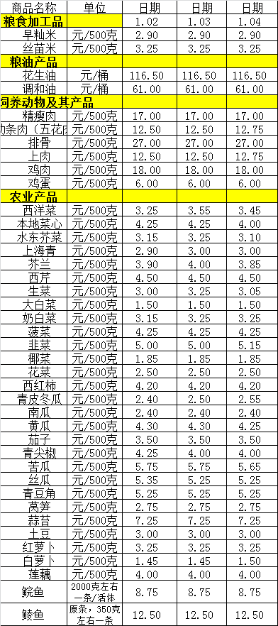 百姓菜篮子价格动态(1.2-1.4)