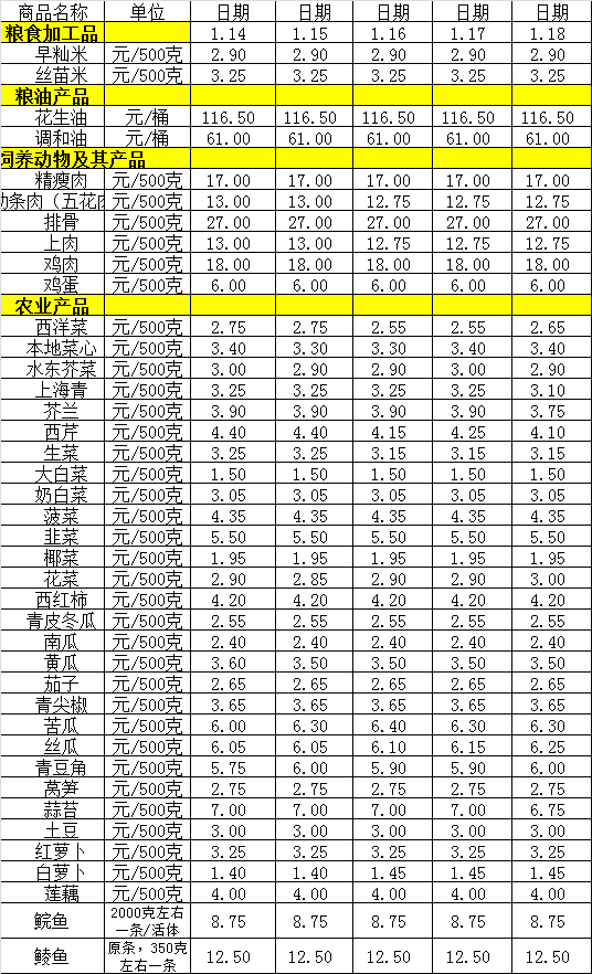 百姓菜篮子价格动态(1.14-1.18)