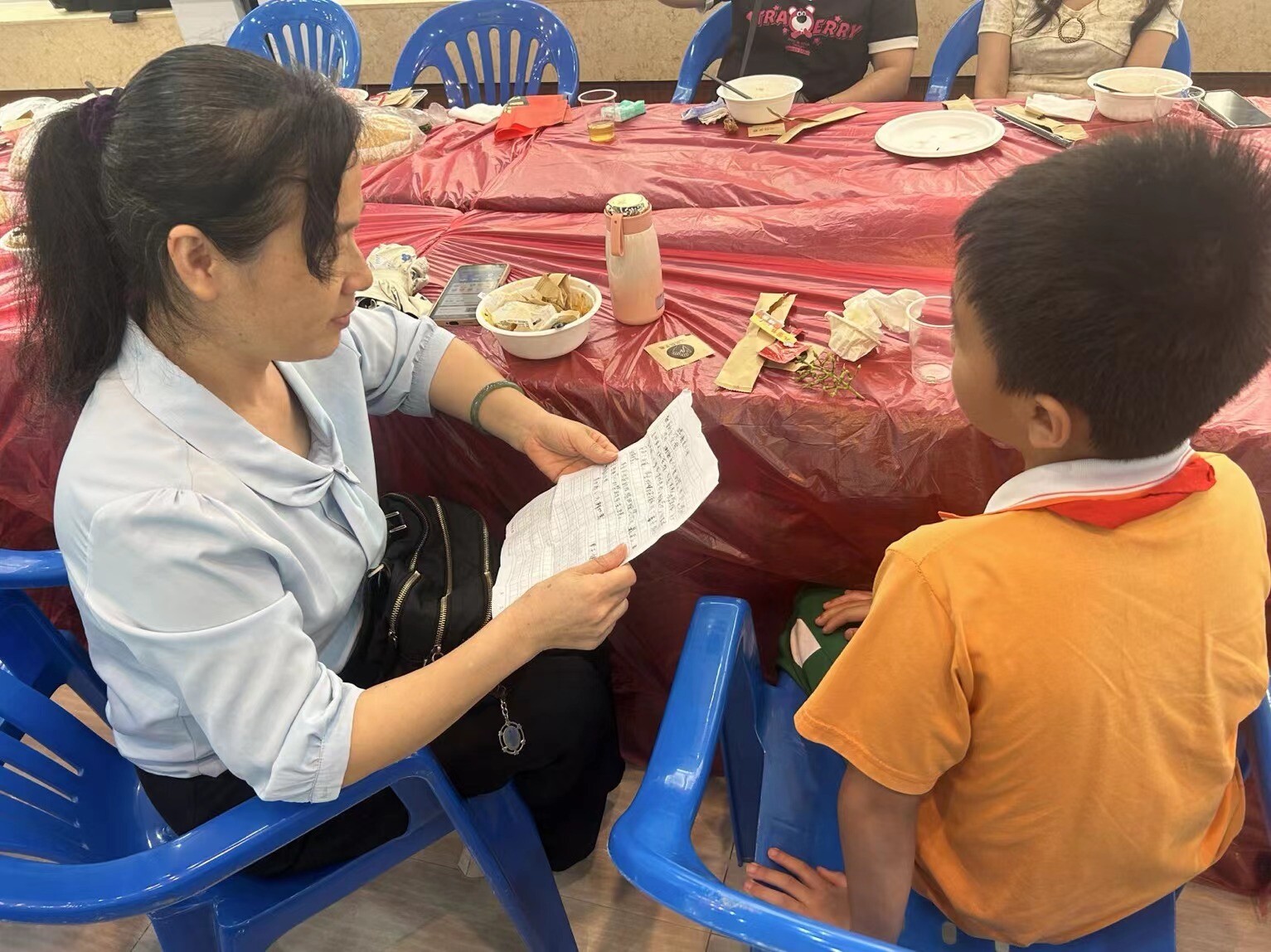 △“爱心父母”与结对儿童进行情感交流