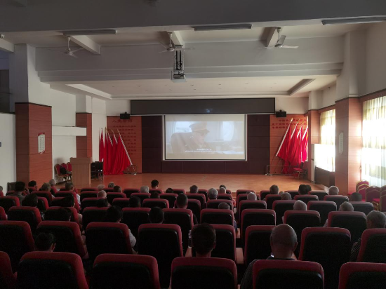 2024年11月7日,义学社区组织退休老党员在党群服务中心大会议室观看红色电影。