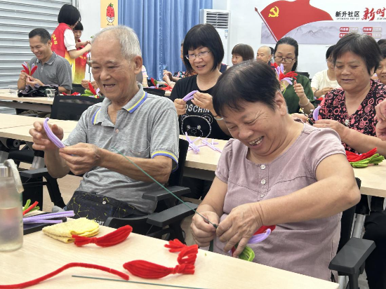 2024年8月9日,新升社区组织辖区老年人在党群活动室开展“银龄同携手”主题插花活动。