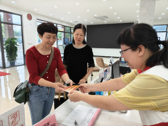 2024年4月25日,沙坪街道凤凰社区在党群服务中心大厅为“红领管家”派送积分存折卡。