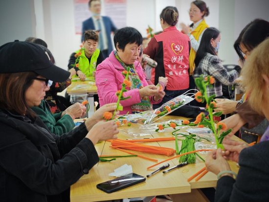 2024年3月8日,新业社区组织辖区群众在党群服务中心综合文化室开展“巧手匠心展芳华”三八主题活动。