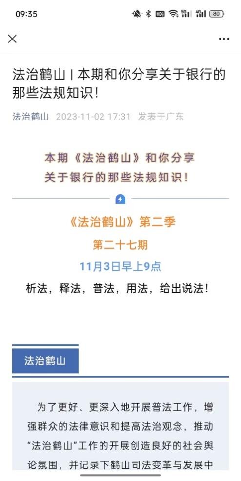 “大家好,我们是来自鹤山农商行的公司律师麦泽民和汤敏莹!本期《法治鹤山》和你分享关于银行的法规知识”。于每周五上午9点准时开播的鹤山电台《法治鹤山》节目在11月3日迎来了新的普法嘉宾——来自广东鹤山农村商业银行股份有限公司的公司律师,本次直播是他们作为公司律师第一次向西瓜视频 民公开亮相。