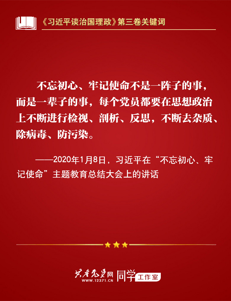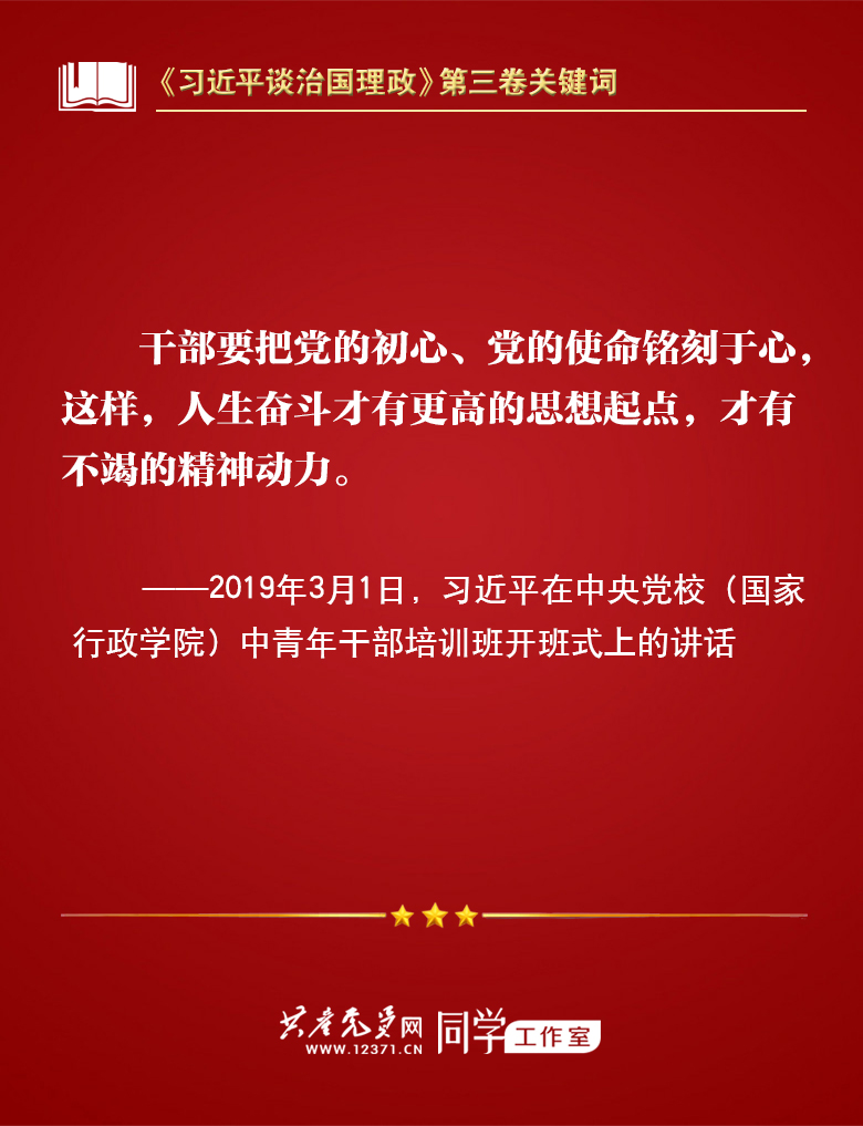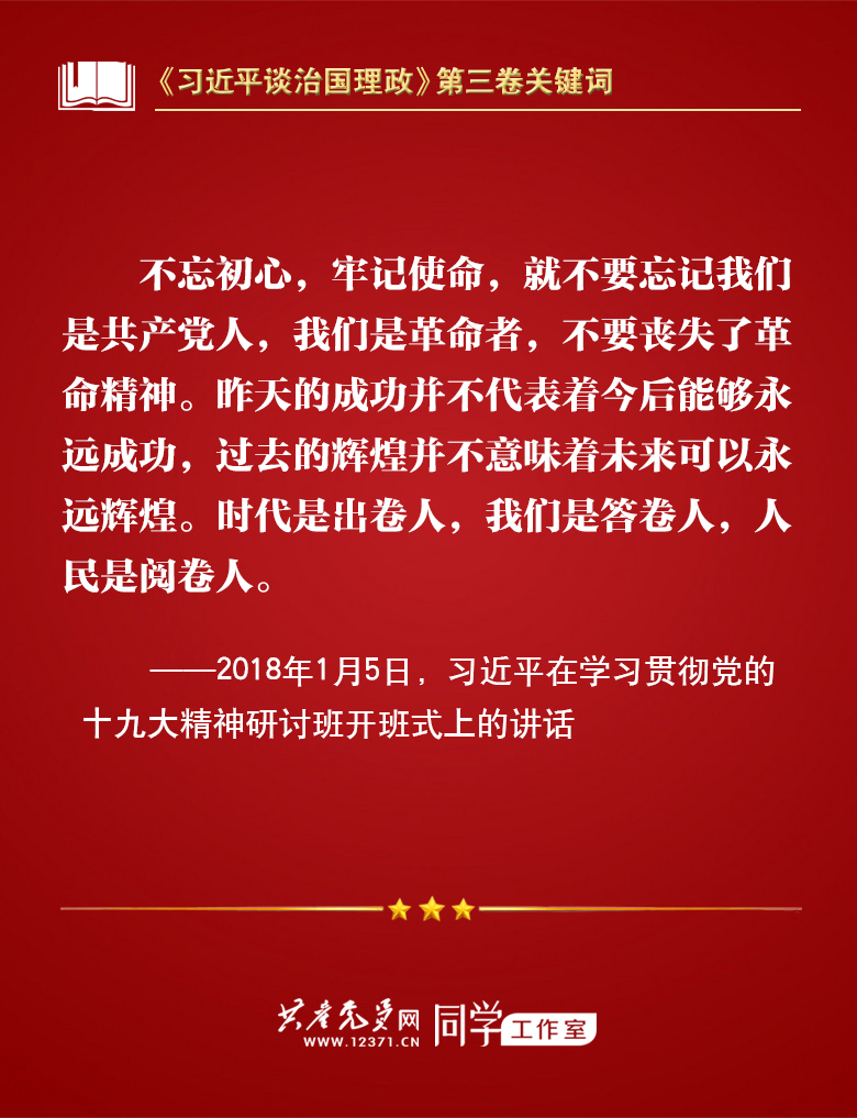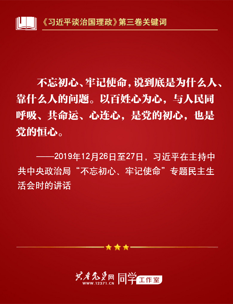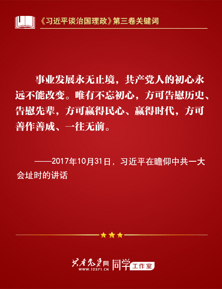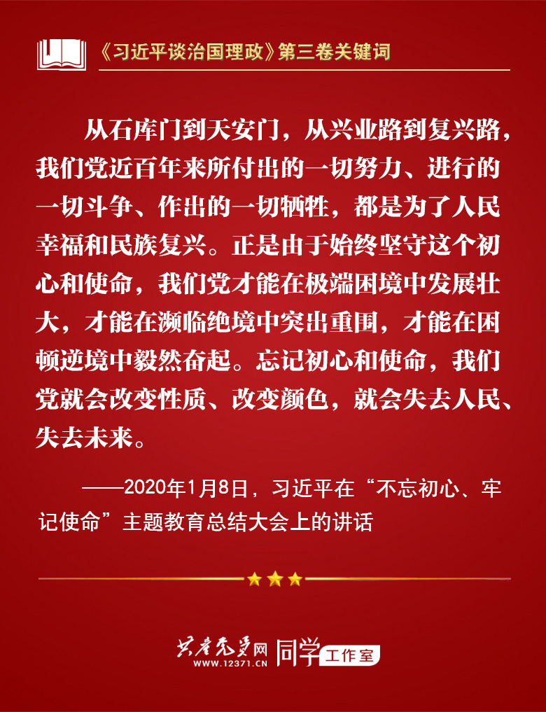 我们梳理习近平总书记部分讲话,带你学习著作中的关键词。今天的关键词是“不忘初心、牢记使命”。