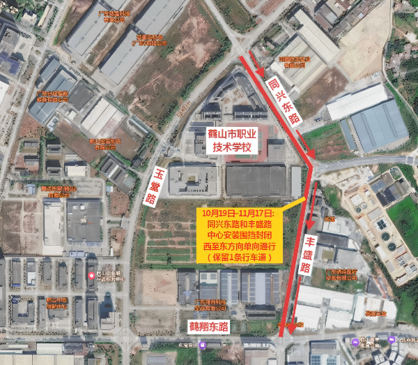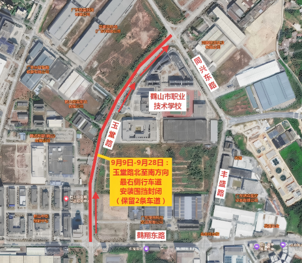 为进一步完善鹤山工业城工业园区市政道路基础配套设施,提升工业园区道路通行条件,确保群众便捷、安全出行,我单位计划于2025年9月9日至12月27日分四阶段对鹤山工业城玉堂路、同兴东路、丰盛路、鹤翔东路实施升级改造,道路全长约2.43公里,计划对上述4条道路现状行车道进行病害处理,路侧路缘石整体替换更新;对丰盛路道路两侧、玉堂路道路两侧增设慢行道;对玉堂路、丰盛路、鹤翔东路3条道路沿线标线擦除并重新设置等。施工期间将对道路采取临时围蔽半幅路面施工,车辆通过交通标志引导至另半幅路面通行。