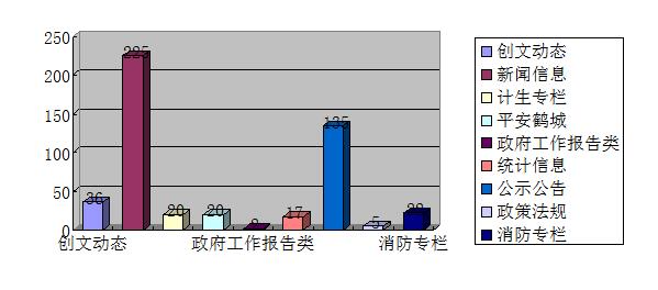 2016年我镇通过各种信息公开形式主动公开的信息共482条,其中创文动态36条、新闻信息225条,计生专栏20条、平安鹤城20期,政府工作报告类2条,统计信息17条,公告公示135条,政策法规5条,消防专栏信息22条。