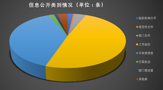 2018年1月至12月,我局共公开信息328条,其中,组织机构公开6条,占1.8%;规范性文件2条,占0.6%;部门文件12条,占3.7%;工作动态161条,占49.1%;公告类信息126条,占38.4%;行政执法6条,占1.8%;部门预决算4条,占1.2%,其他类11条,占3.3%。