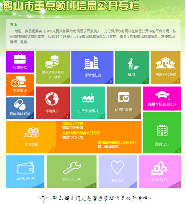 为进一步加强重点领域信息公开工作,省府办公厅对《重点领域信息公开专栏建设规范》进行了修订。我市政府门户网站设置了重点领域信息公开专栏,抓好重点领域信息公开任务落实,进一步扩大安全生产、就业、财政、审计、科技管理和项目经费、价格和收费、信用等领域信息公开范围,细化公开内容。重点做好推进行政权力清单、“三公”经费财政资金信息、公共资源配置、重大建设项目信息、环境保护信息、食品药品安全信息等公开工作,完善重点领域信息公开专栏建设。