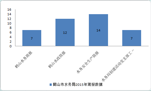 2015年,我局编印7期《鹤山水务简报》、12期《鹤山水政简报》、14期《水务安全生产简报》、7期《水务局创建活力党支部工作简报》。