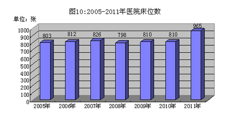 全市有医院、卫生院14间;卫生机构床位965张,其中等级医院床位908张;卫生机构人员数1358人,卫生技术人员有1125人,其中:执业医师411人,执业助理医师73人,注册护士439人,药剂人员105人,检验人员57人。全市卫生站149个,卫生站总人数201人。新型农村合作医疗稳步发展,覆盖面不断扩大,参加人数26.21万人。